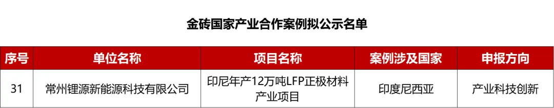 【龙蟠科技】锂源科技印尼项目入选2025金砖合作案例公示名单